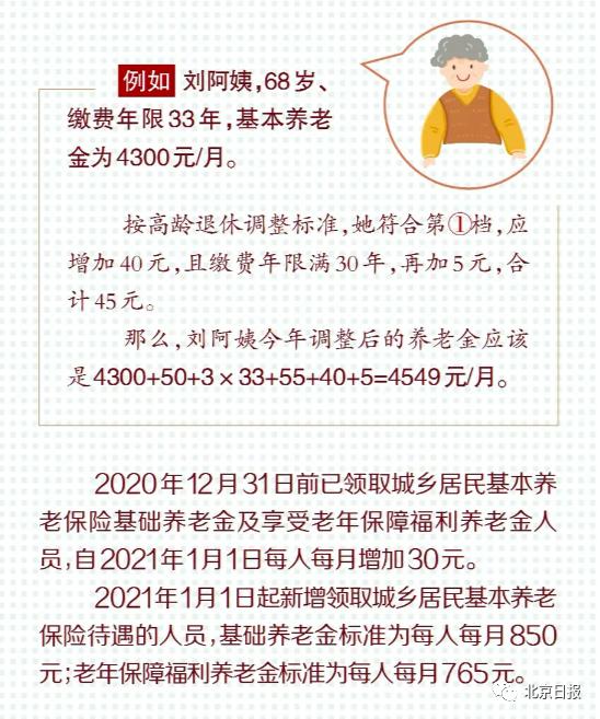 对于2020年12月31日前已领取城乡居民基本养老保险基础养老金及享受老年保障福利养老金人员,自2021年1月1日每人每月增加30元。