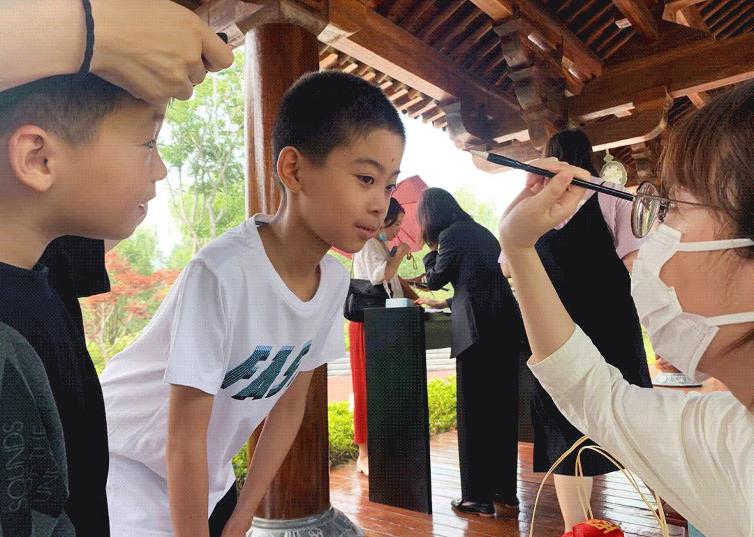钱家渡游客服务中心现场为大朋友、小朋友提供汉服体验活动,并赠送端午花灯一个,大家可手捧花灯前往阡陌码头或钱家渡码头,在花灯上写下愿景,花灯顺着河水顺流而下,满载对美好生活的向往。