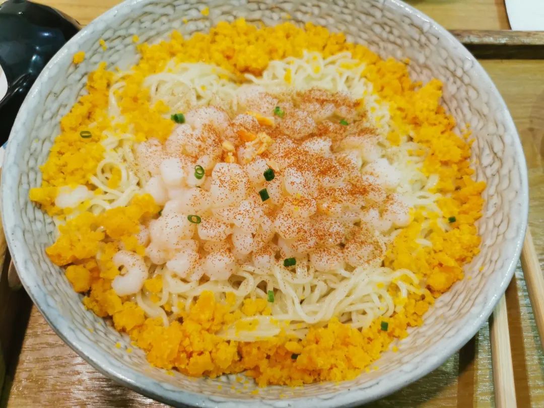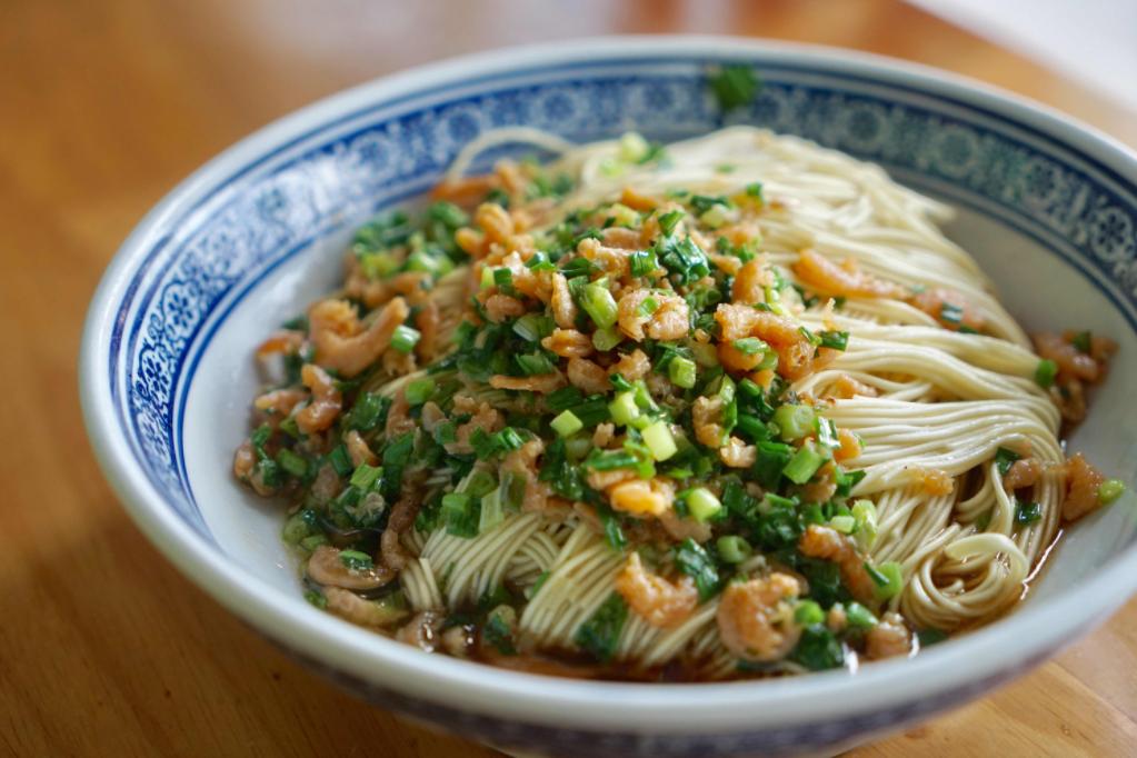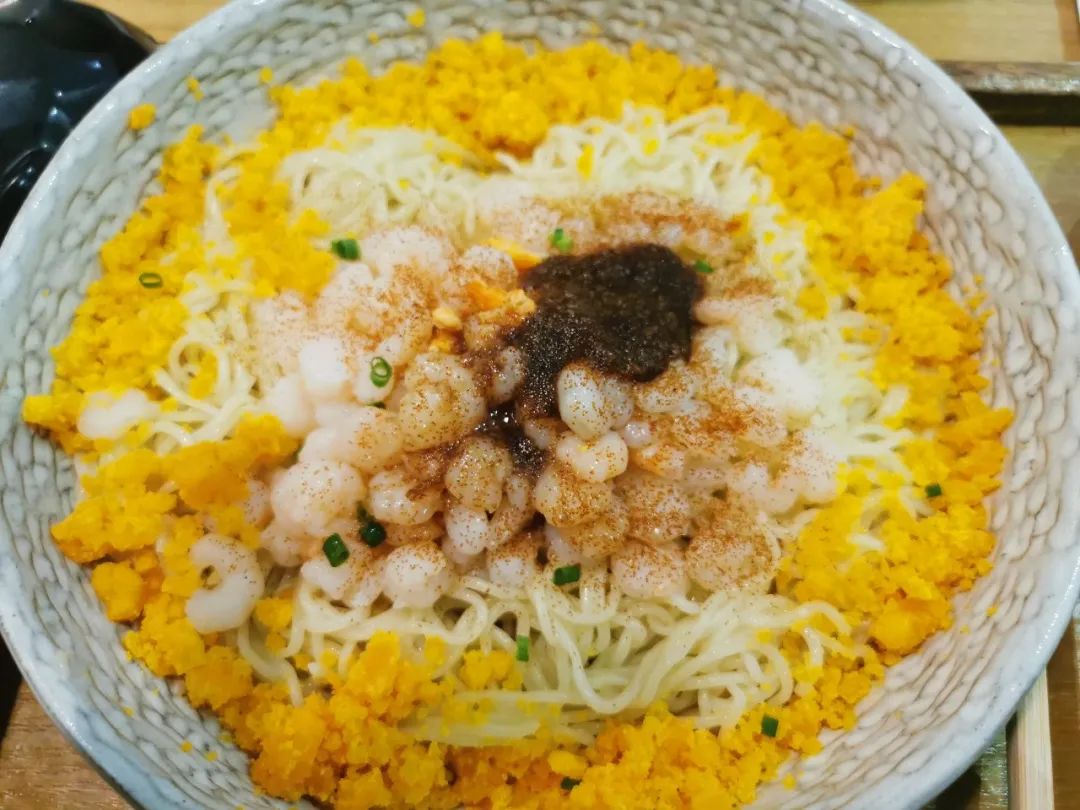 按照邵老先生之前介绍的吃法,我将浇在面条上的虾仁和虾脑先搅拌起来,再把虾籽浇上去,撮一口放进嘴里,心里有份满足感。