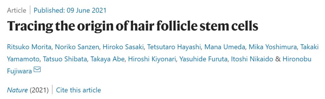 2021年6月9日,日本理化学研究所(RIKEN)的研究人员在国际顶尖学术期刊 Nature 在线发表了题为:Tracing the origin of hair follicle stem cells 的研究论文。