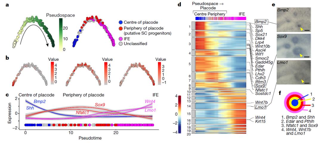 这项研究结合成像和基因表达分析发现,形成毛囊的盘状结构中细胞呈同心圆排列,这预先决定了它们在成熟毛囊中的最终命运和位置。