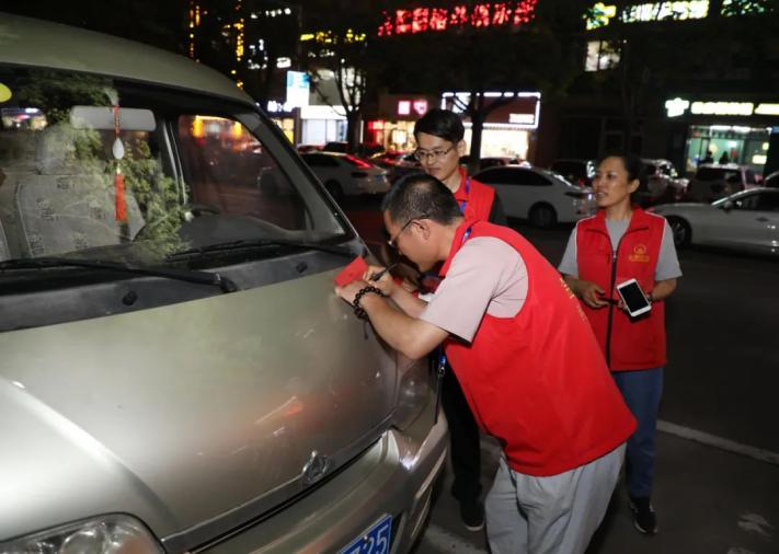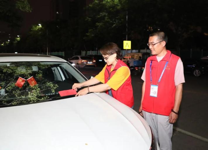 ▲志愿者将温馨提示卡放在车辆的显眼位置
