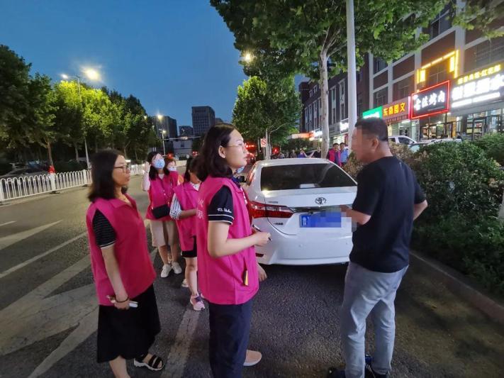 夜幕降临,夏夜的潍坊,格外热闹结束了一天的忙碌,有人归心似箭,有人选择休闲消遣,浩荡的车流驶入大街小巷,在一个个“小蓝位”上整齐排列,不一样的是,“小蓝位”的旁边,多了一抹耀眼的“志愿红”。
