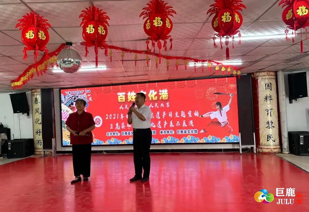 6月11日,以“人民的非遗 人民共享”为主题的“2021年文化和自然遗产日巨鹿县非物质文化遗产展示展演”活动在百姓文化港拉开了序幕。本次活动由巨鹿县文化广电和旅游局主办,巨鹿县文化馆承办,旨在弘扬中华优秀传统文化,动员全社会共同参与、关注和保护文化遗产,同时也是增强全社会文化遗产保护意识,落实“三重四创五优化”活动的重要举措。