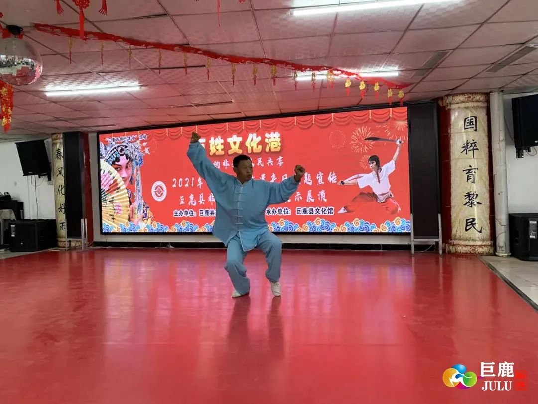 活动开始,悠缓典雅、保留着“全真正韵”音乐风格的巨鹿道教音乐引来阵阵掌声;以招为骨、以术为肉、以理为血、以腾龙在舞为理念的戚继光三十二势拳引得现场观众阵阵喝彩;于清道光(1821-1850)年间兴起,一直延续至今的巨鹿县地方小戏四股弦(冀南四股弦)曲调优美、风格鲜明,深受广大群众喜爱;动作套路朴实大方、威武雄壮的梅花拳既有技击制敌的实战功能,又有表演观赏价值;轻松明快、旋律优美,唱起来琅琅上口,易记、易学,且雅俗共赏的巨鹿乱弹在传习人的表演下让观众意犹未尽,共享非遗文化饕餮大餐。