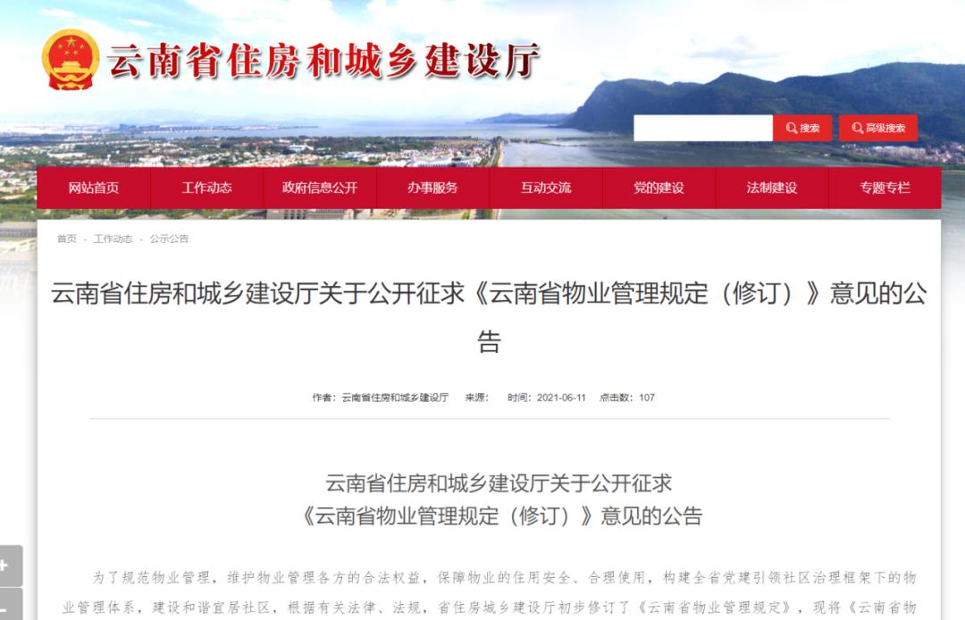 原标题:《今后物业费这样收!《云南省物业管理规定(修订)》征求意见稿发布》
