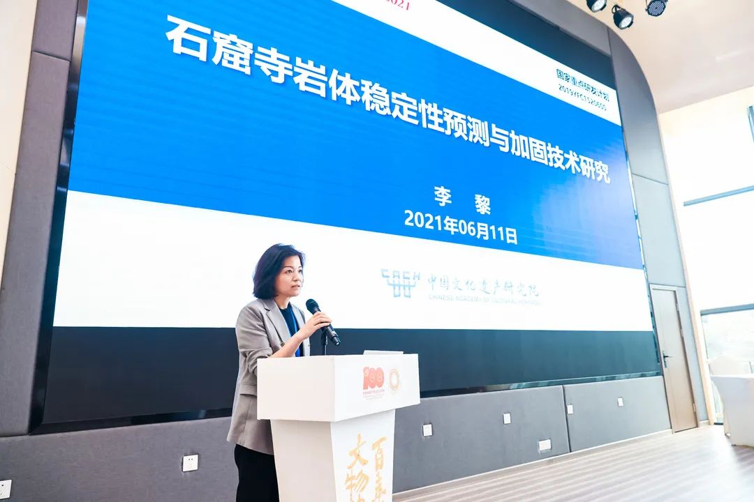 中国文化遗产研究院文物保护修复所所长李黎带来了石窟寺岩体稳定性预测及加固技术研究,她介绍,我国石窟寺及摩崖造像丰富,不过分布由于区域不同,岩体和环境的差异显著,阐明石窟寺岩体变形破坏过程和失稳机理,实现稳定性检测和预测,建立失稳防控技术体系,是前沿科学问题也是巨大挑战。