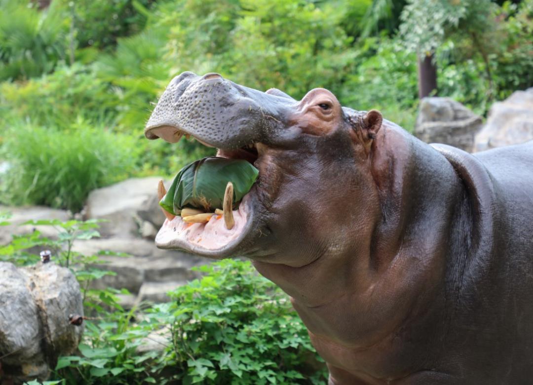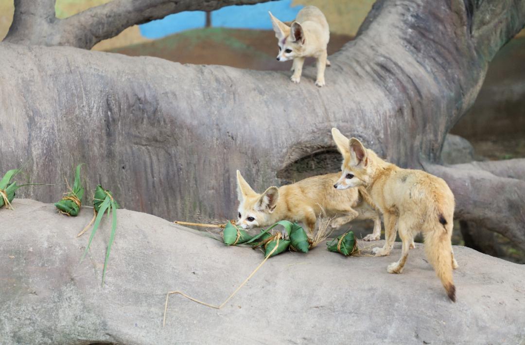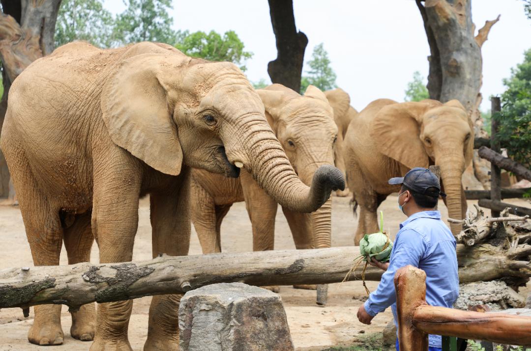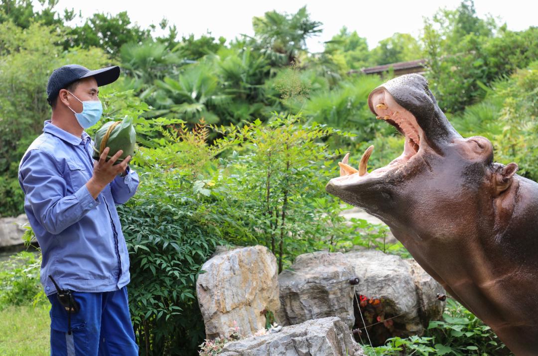 吃粽子是端午节最重要的习俗,园内的河马、非洲象、环尾狐猴,红猩猩、黑猩猩、耳廓狐等原产于国外,它们特别想感受下中国的传统文化。