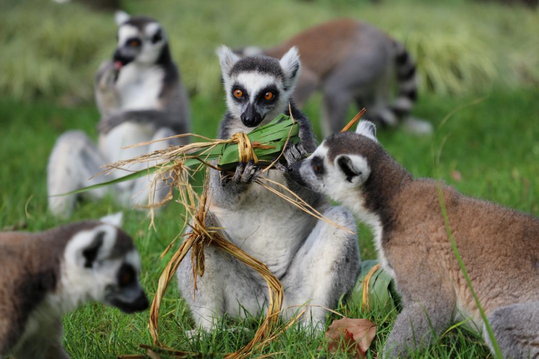 环尾狐猴最爱甜甜的水果,枕头形状的粽子裹满了香蕉、苹果等甜味十足的水果。女猴王带领着它的子民蜂拥而上,将粽子团团围住,先是好奇的嗅了嗅,甜甜的水果香让环尾狐猴欲罢不能……