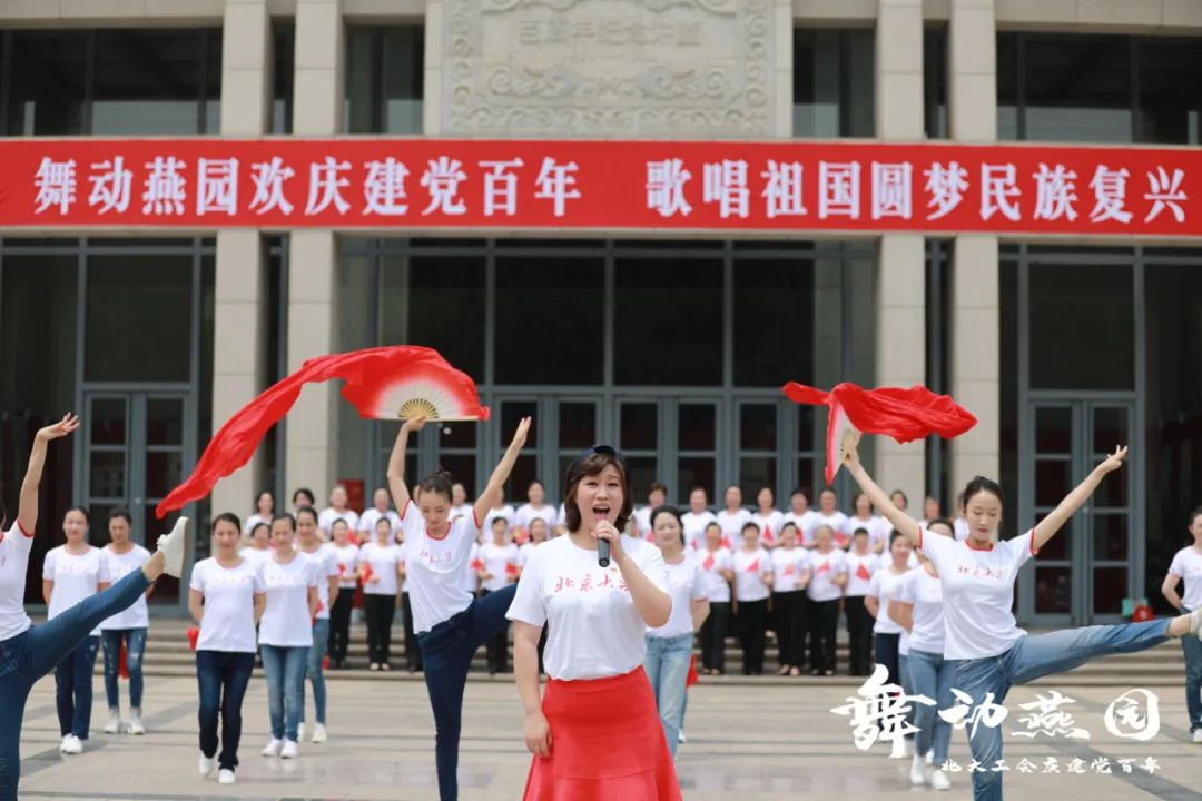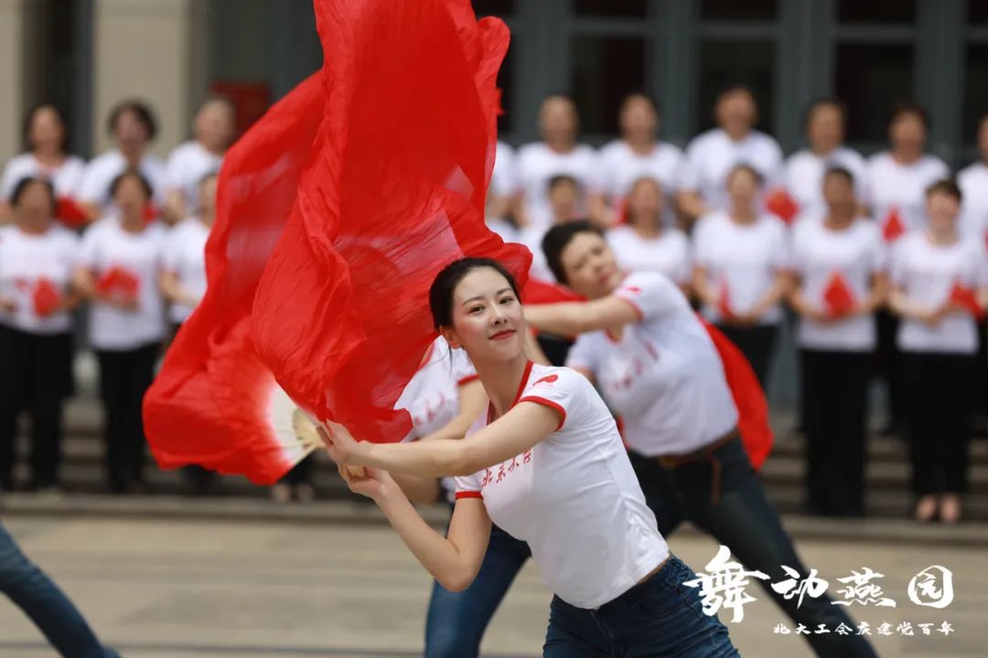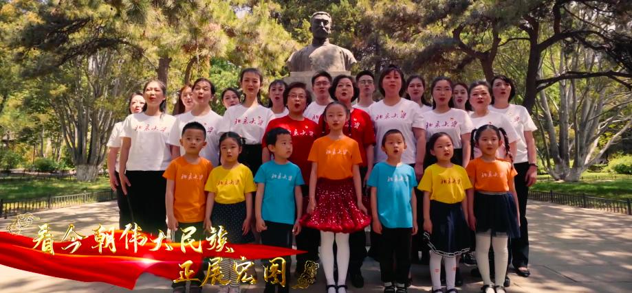 为致敬百年峥嵘岁月,北京大学教工合唱团与师生医护代表共同演唱原创歌曲《北大红》。