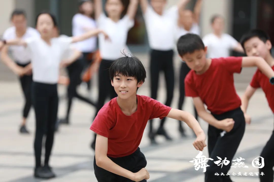 青春飞扬、活力四射的北大少年们登场。小舞者们踏着欢快的乐曲,彩绸翻飞,青春在阳光下尽情绽放。