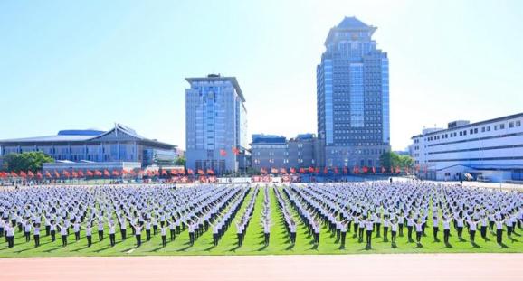 校运会开幕式上,来自66个院系所、中心、部门的1584名北京大学教职工,带来了精彩的团体操表演。“燕园情、千千结”,熟悉的歌声同教职工们的整齐划一、极具气势的动作交相辉映,令观者心潮澎湃。演出队伍集中在场地中央,“团结起来,振兴中华”呼喊回荡在五四运动场。