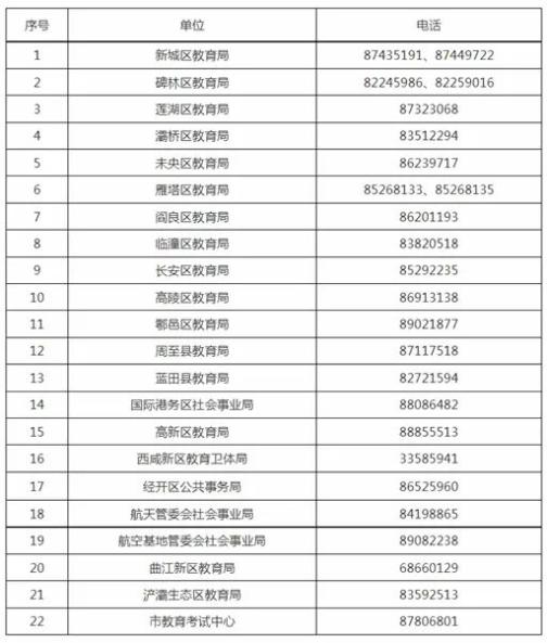 各区县、各开发区初中学业水平考试与高中阶段学校招生咨询电话