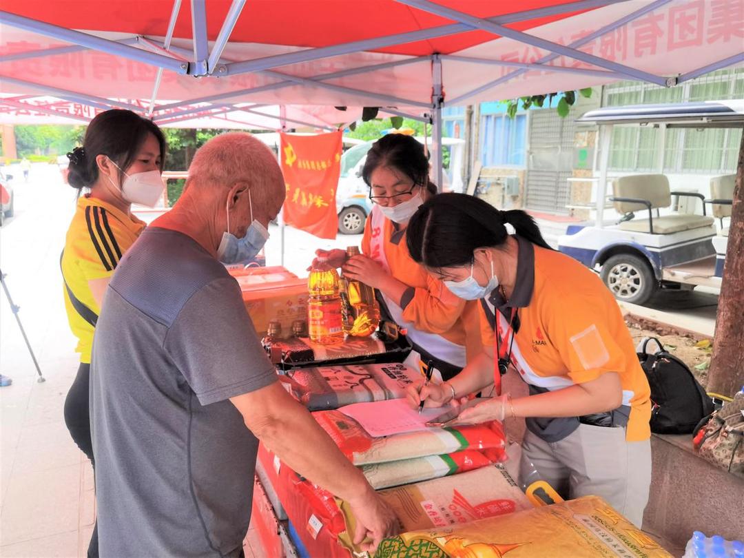 面对封控区居民买菜难、选择少的生活问题,岭南集团从当初3个固定应急供应点增至目前15个,数量增加4倍,每个供应点物资的品类超100种,全程冷链配送,保证肉菜新鲜。端午假期,岭南集团积极组织应节产品丰富菜篮子。6月9日起,供应粽子、糕点等应节食品,每天供应15个品种以上的新鲜蔬菜,5款以上的鲜猪肉,每日保持6-10种更新,让大家过节餐桌菜式更加多样。目前15个应急供应点,组织20多个党员突击队、青年志愿突击队,累计出动近2000多人次,配送车辆768余车次,向供应点投放粮油面、禽肉蛋和蔬果等生活物资180余吨,其中投放大米41吨、蔬菜 75吨、肉 34 吨、食用油1.2万升、面条 1.5万箱,水果18吨、调味品5000多瓶以及食盐 、蛋和奶等其他生活必需品4万多件。