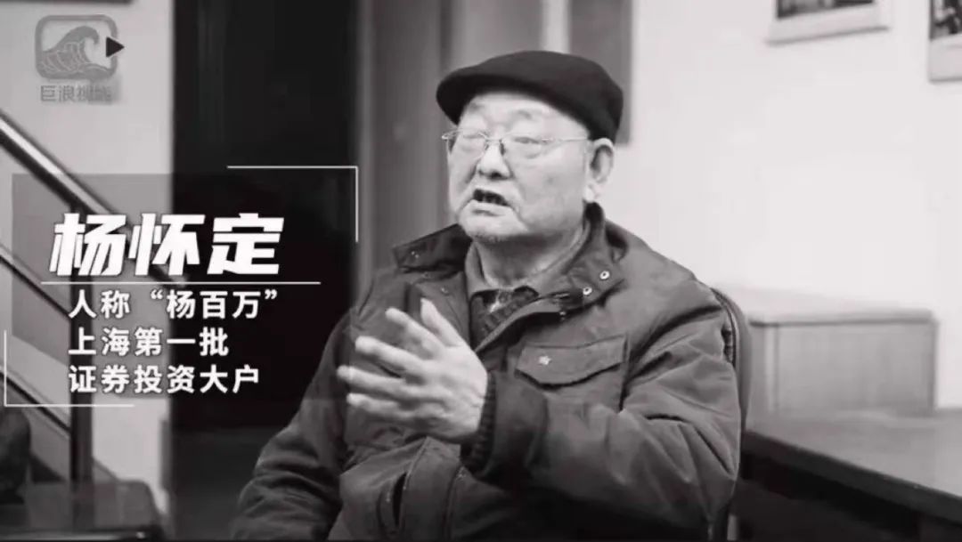 公开资料显示,杨怀定1950年生,祖籍江苏镇江,原是上海铁合金厂职工。1988年春,国库券转让从7座城市开始试点,逐步增加到在61座城市放开,还出现了异地差价。他凭借买卖国库券赢得了人生“第一桶金”。杨怀定此后成为上海滩第一批证券投资大户,股票市场上炽手可热的风云人物,因炒股盈利超过一百万元,人称“杨百万”,更被一些媒体称作“中国第一股民”。