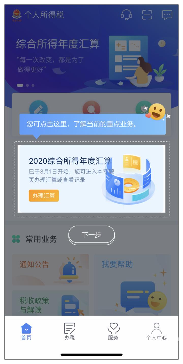 登录个税App,进入首页“综合所得年度汇算”时,如果2019年度尚未完成申报,要先完成该年度汇算申报,才可以申报2020年度汇算。