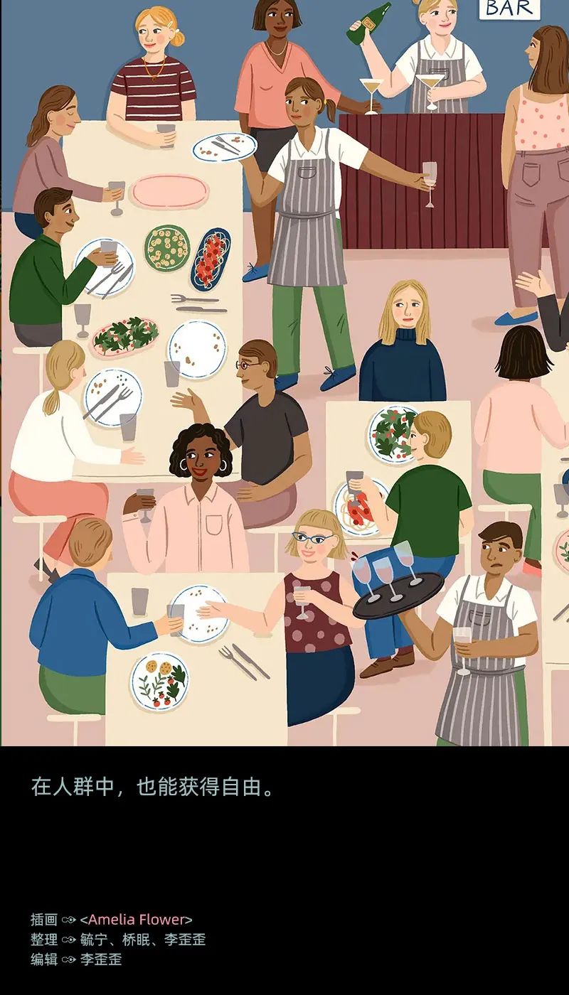 刚来大学的时候,和室友饮食生活习惯和待人接物方式都有很大不同。我就整日战战兢兢想要维系好我们之间的关系,尝试和她们吃我不习惯吃的菜,尝试和她们一起做我不太喜欢做的事,努力试着接受她们的“同化”——上课聊天下课玩耍,早上赖床深夜打游戏。后来我再也受不了这样的自己,我不是这样的,我喜欢健身喜欢看书喜欢早起学习享受太阳慢慢升起阳光撒在身上的感觉,我决定勇敢一些,不做一个百般顾虑的人。喜欢要说出来,不舒服也要说出来,可以不那么在意别人的目光,多在意自己的感受,不必唯唯诺诺战战兢兢讨得他人可有可无的认可。那之后便开始我独自游走在图书馆的求学时光了,忙碌却充实而快乐