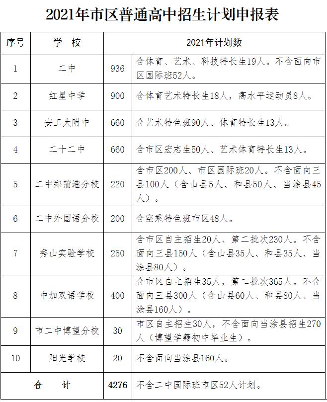 (1)提前批次。市二中国际班、安工大附中艺术班(含中马班)、市二十二中宏志班、市二中外国语分校空乘班、市二中郑蒲港分校国际班、市二中博望分校市区计划等特色班类和各省示范高中特长生类计划以及民办学校市区自主招生计划在此批次录取。