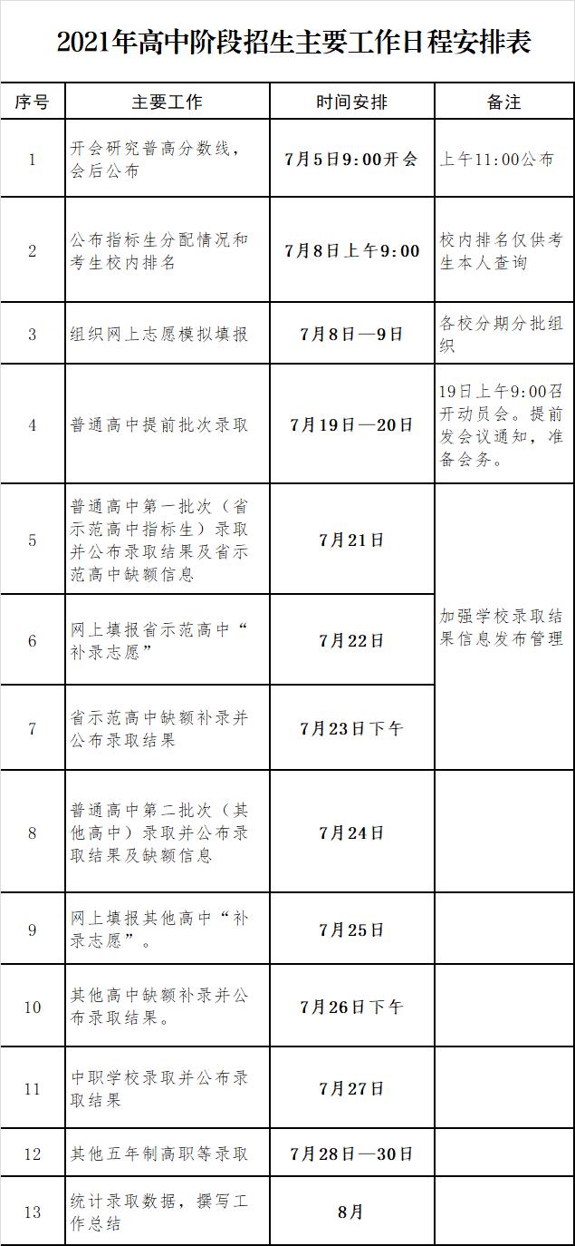 7月5日上午11点发布成绩,并公布2021年市、县普通高中最低录取控制分数线。