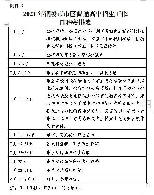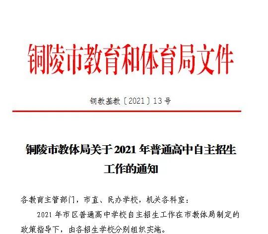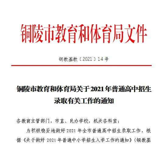 原标题:《关注!铜陵市2021年普通高中招生录取有关工作通知来了》