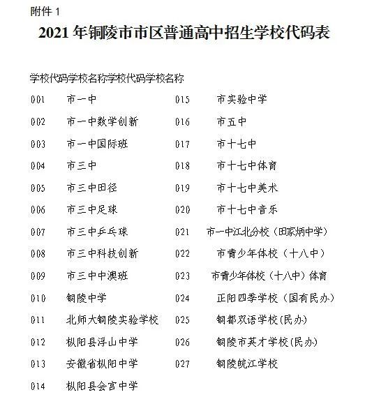 1.2021年铜陵市市区普通高中招生学校代码表
