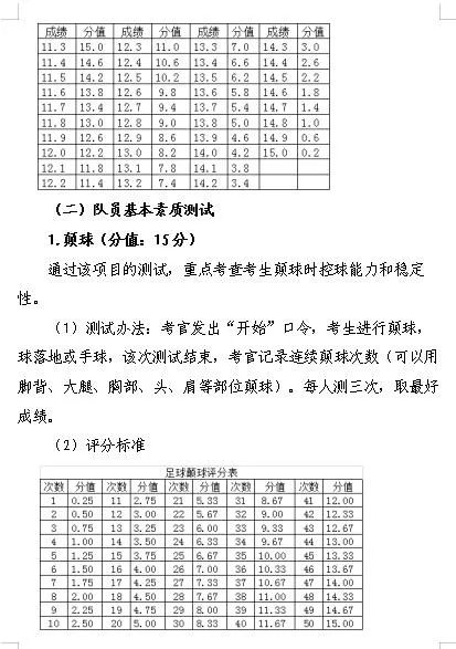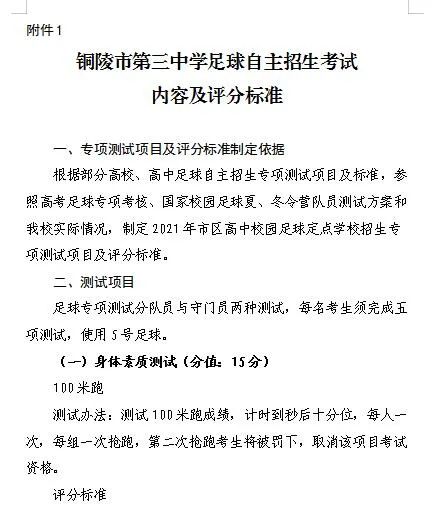 1.铜陵市第三中学足球自主招生考试内容及评分标准