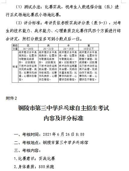 2.铜陵市第三中学乒乓球自主招生考试内容及评分标准