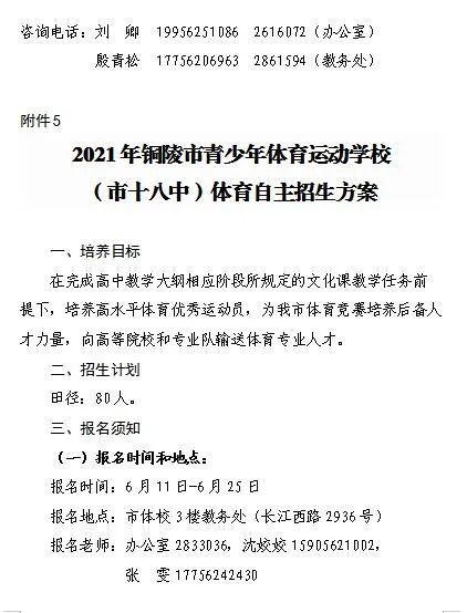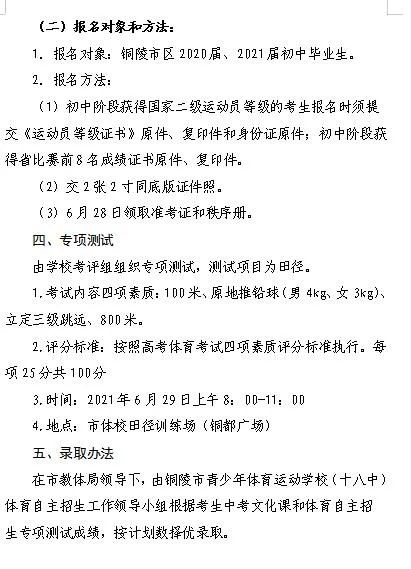 5.2021年铜陵市青少年体育运动学校(市十八中)体育自主招生方案