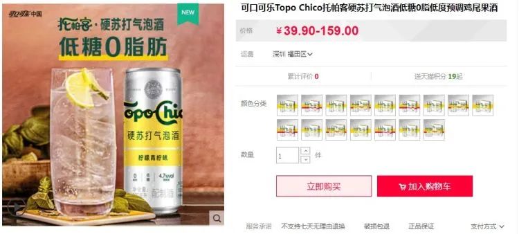 据可口可乐公司介绍,托帕客硬苏打气泡酒以无麸质酒精为基底,融合苏打气泡水制成,具有低酒精度(4.7%vol)、低糖、零脂肪,并带有自然果香等特点。目前,该产品推出三种风味:柠檬青柠味、草莓番石榴味以及缤纷菠萝味,已于6月1日在可口可乐天猫旗舰店正式发售。