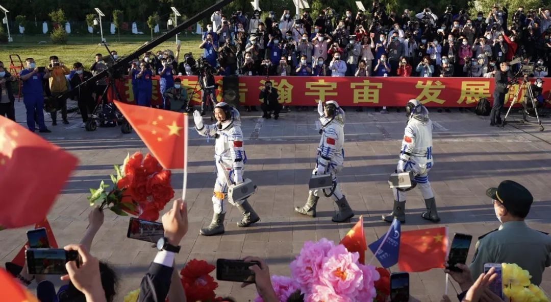 神舟十二号飞船三名航天员从问天阁受命出发 西工大苟秉宸教授 摄