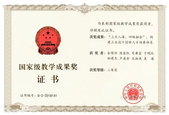 “‘上天入海、四维融合’,构建工业设计创新人才培养体系”荣获2018年国家优秀教学成果二等奖