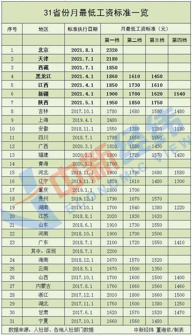 记者梳理发现,年内,包括北京在内,天津、江西、黑龙江、陕西、新疆、西藏陆续上调最低工资标准。