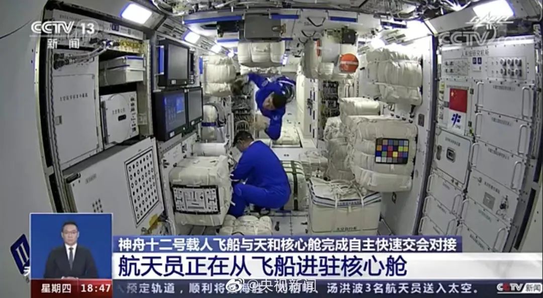 据新华社,中国载人航天工程办公室消息,在神舟十二号载人飞船与天和核心舱成功实现自主快速交会对接后,航天员乘组从返回舱进入轨道舱。