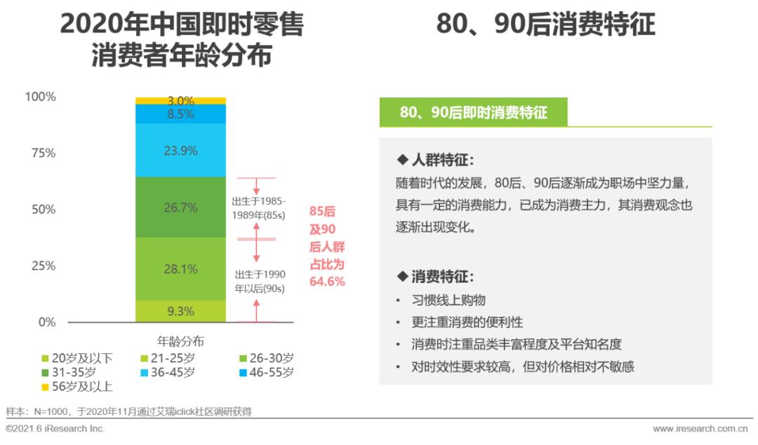 即时零售消费者以80、90后为主,消费者对个性化、舒适化、便捷化的需求日益提升