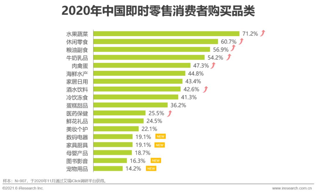 从需求端来看,疫情使线下消费尤其生活必需品类受到较大冲击,疫情期间外出不便的消费者纷纷选择通过到家业务、直播购物等线上场景进行消费,艾瑞调研数据显示,生鲜水果、食品饮料、医疗保健等品类线上消费人群高速增长。就供给端而言,2020年以来,线下门店加速拓展其线上销售渠道,加快数字化转型。总体而言,受疫情影响消费场景加速向线上转移,门店到家业务、数字化零售迎来发展新机遇。