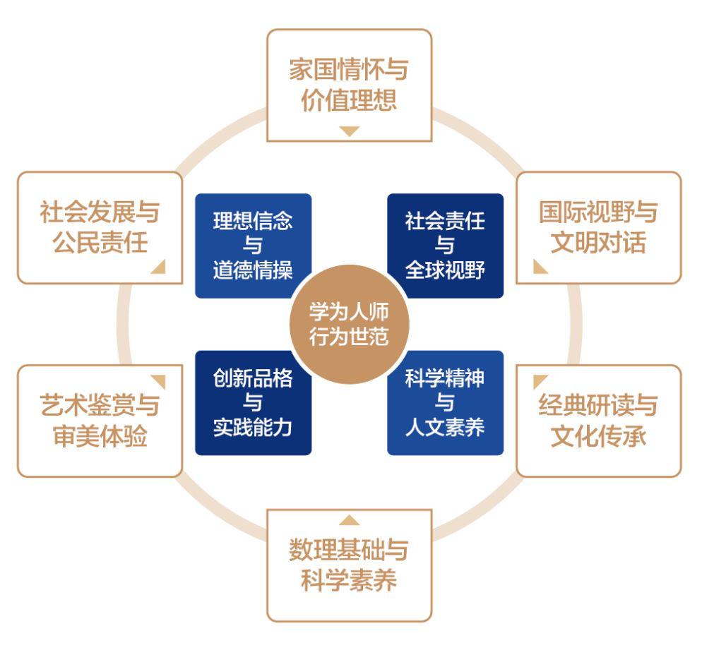 北京师范大学坚持立德树人,将促进人的全面发展和适应社会需要作为人才培养质量的根本标准,以培养面向未来的卓越教师和拔尖创新人才为目标,秉承“拓宽基础、加强融合、尊重个性、追求卓越”的本科教学指导思想,坚持通识教育与专业教育有机融合。