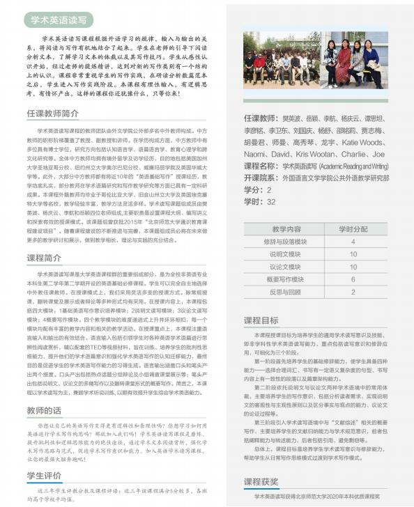 任课教师:樊英波、岳颖、李航、杨庆云、谭思坦、李彦铭、李卫东、刘国庆、杨舒、邵铭莉、贾志梅、胡曼君、师曼、高秀琴、龙宇、Katie Woods、Naomi、David、Kris Wootan、Charlie、Joe