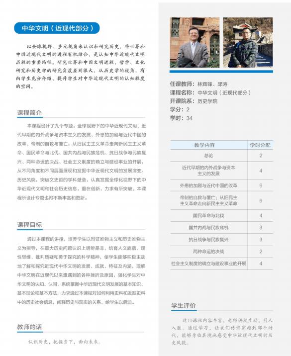 教务部制作了通识教育核心课程手册,包含了核心课程的基本信息、课程简介、课程目标、教学大纲、学生评价等,便于学生选择自己感兴趣的课程修读。让我们一起领略这些课程的魅力所在。