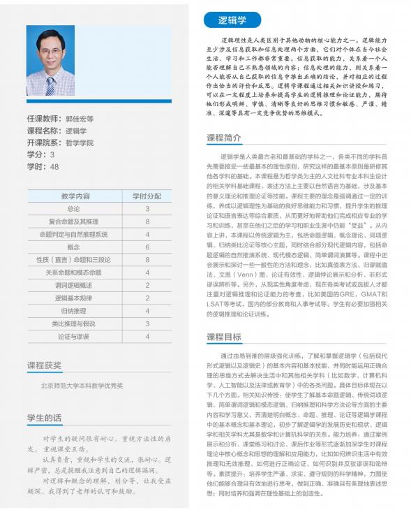 学校高度重视通识教育,持续开展通识教育课程建设,构建了具有北京师范大学特色的通识教育课程体系,旨在使学生通过大学的学习,在知识掌握、能力发展和综合素质提升方面获得长足进步。在离开学校后,能够从在大学学习时获得思维方式和技能中受益,在未来面对迅速变革的时代和社会时,能够以开放的思路和多元的视角,去应对问题和挑战,探究事物的本质,积极寻找有效解决方案,创造社会价值。