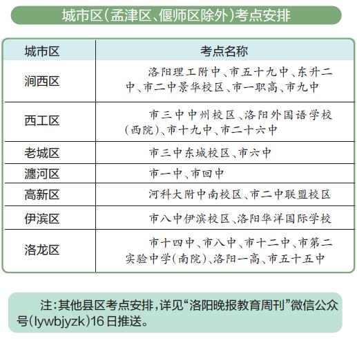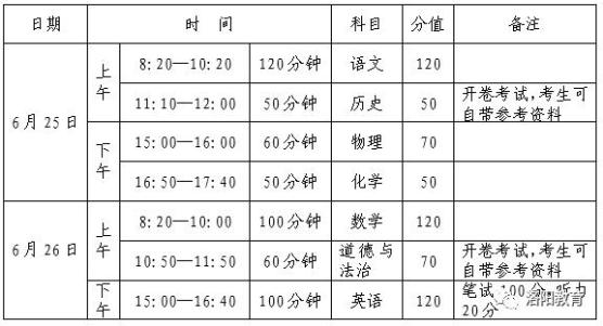 “今年,根据省教育厅的统一安排,全省中招考试部分科目考试时间有所调整,洛阳市中招考试时间和全省保持一致。考生要合理安排,以免因记错考试时间,造成迟到或错过考试。”市招生考试中心相关负责人说。