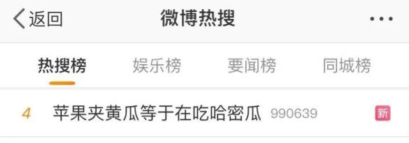 “苹果夹黄瓜等于在吃哈密瓜。”