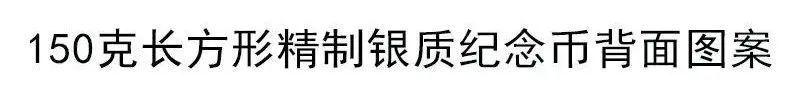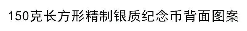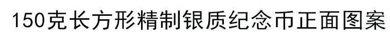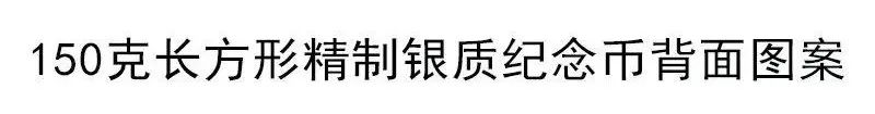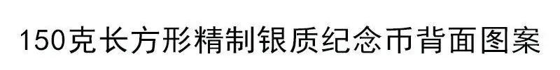 150克长方形银质纪念币为精制币,含纯银150克,规格80毫米×50毫米,面额50元,成色99.9%,最大发行量4×10000枚。