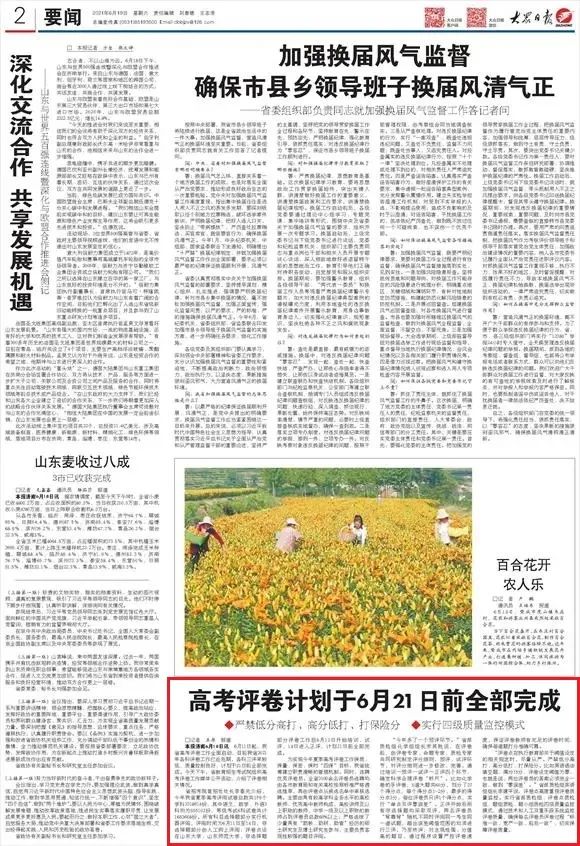 原标题:《山东高考评卷计划于6月21日前全部完成》
