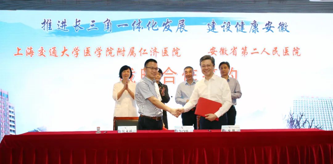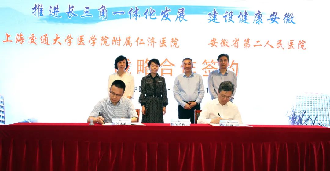 6月19日上午,安徽省第二人民医院与上海交通大学医学院附属仁济医院“党建引领医院高质量发展”战略合作签约仪式在合肥举行。双方将贯彻国家长三角一体化发展战略,开展多方面合作,推动医院高质量发展。