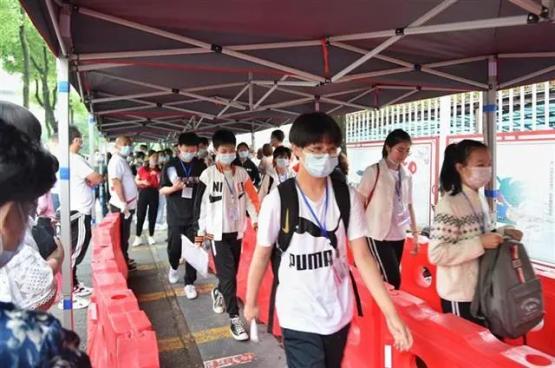 6月20日,中考首日在吴家山第三中学考点门前,考生通过测温进入考点,秩序井然。(湖北日报全媒记者 倪娜 摄)