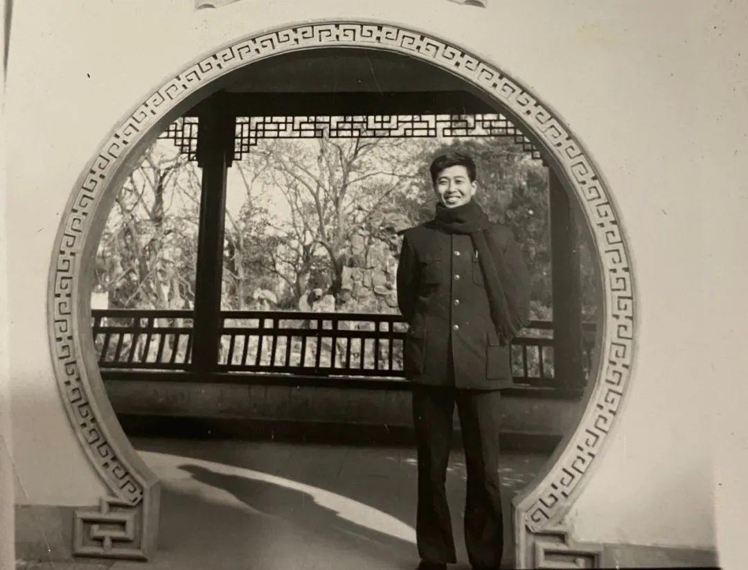 这是1978年改革开放那年,父亲在嘉定古猗园拍摄的一张照片。那天父亲和同学们身穿中山装,感受着时代新的气息,高高兴兴地从市区来古猗园游玩。父亲喜欢旅游和摄影,一次从黄山回来,我看到一张他在黄山顶的照片,问他这么高不怕吗?父亲说:“无限风光在险峰。”勇于尝试、敢于创新,这就是父亲留给我印象最深的地方。
