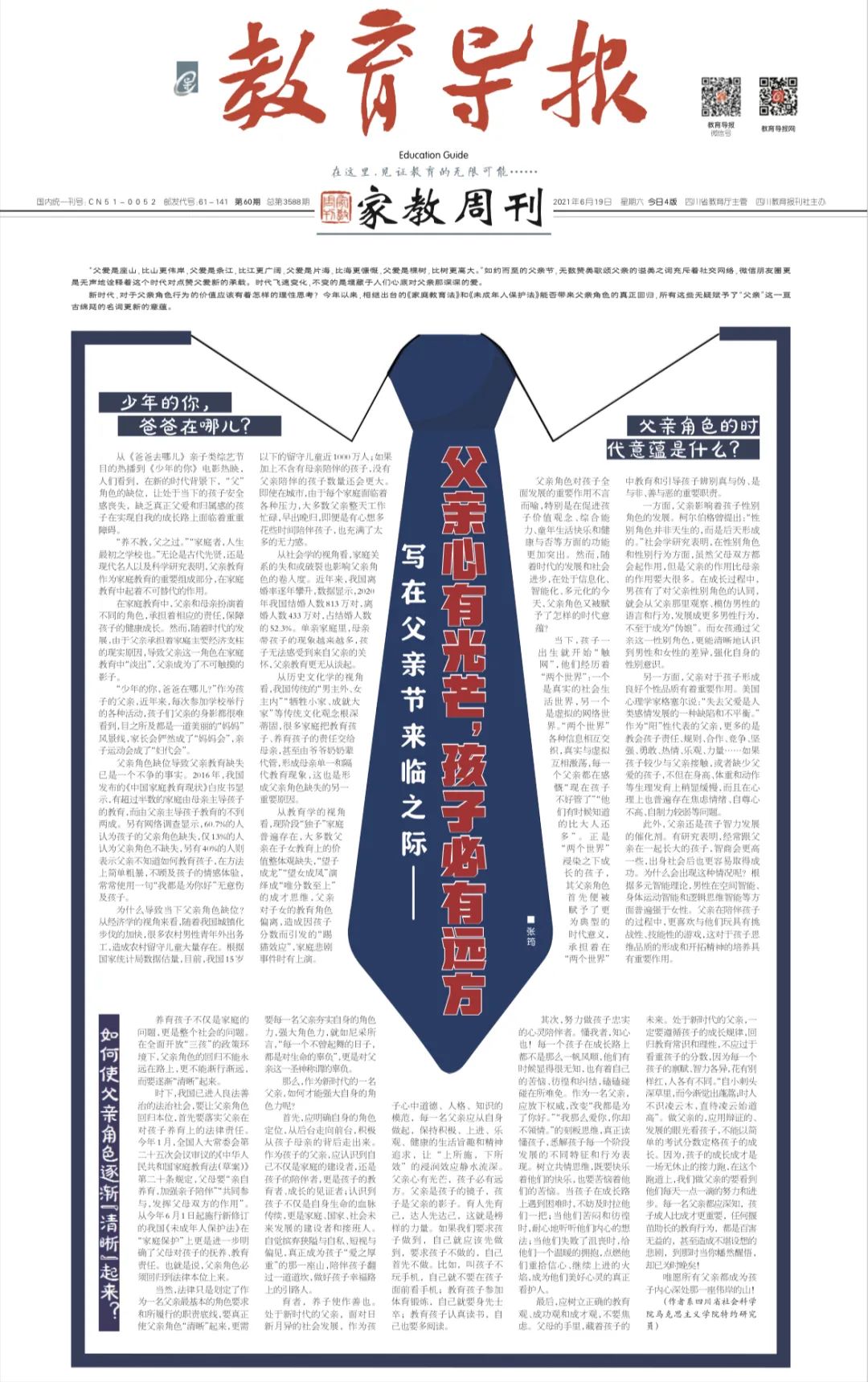 《教育导报》6月19日刊登我院张筠同志的文章《父亲心有光芒,孩子必有远方》。全文如下: