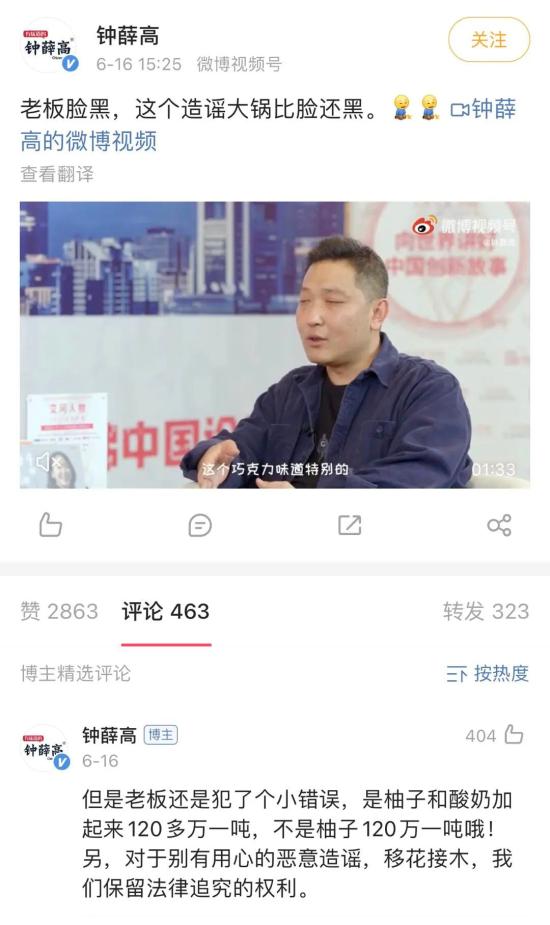 钟薛高随后回应,网上流传的视频属于恶意剪辑,原视频中,林盛所说的“爱要不要”指的是原材料柚子价格昂贵,而非雪糕。