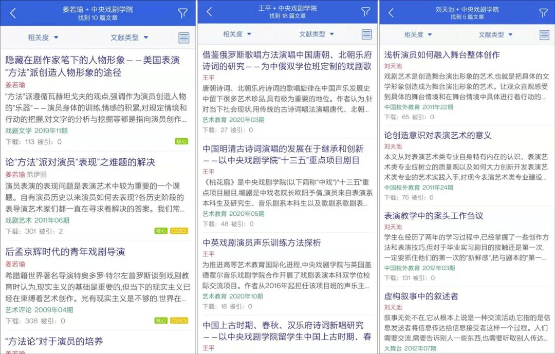 而与陈好同列的中戏教授王平、姜若瑜均发表过学术论文;此外,曾在《演员的诞生》、《我就是演员》等演技竞演类综艺节目担任导师的中戏副教授刘天池,同样也有文章发表。