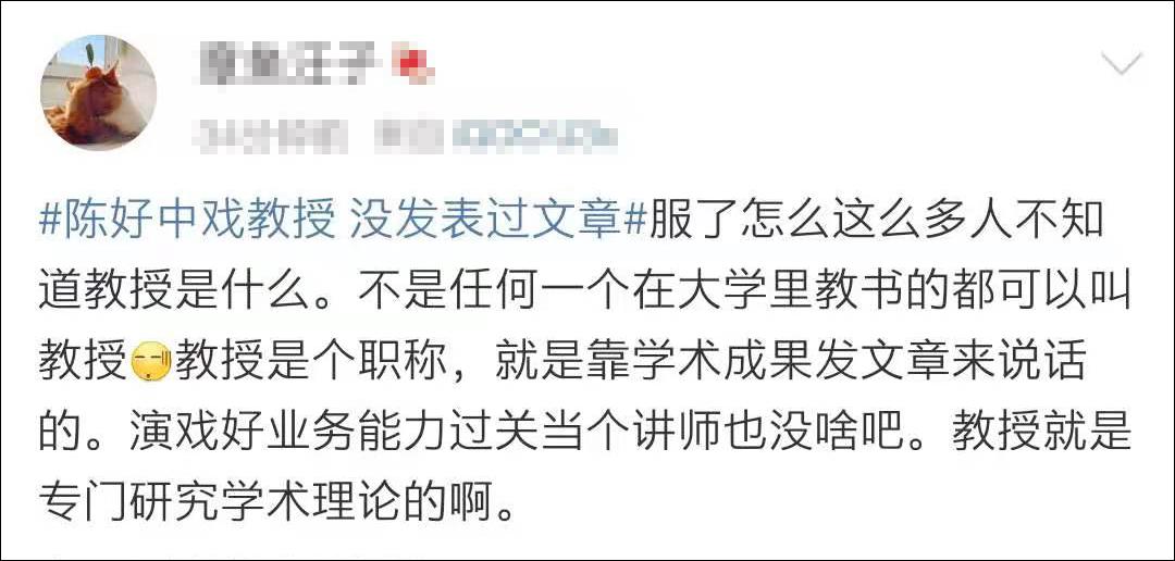 “没有文章,意味着这个人对该学科毫无个人观点输出,这样评教授,特别是中戏这样一个戏剧类最高学府的教授合理吗?”@小娱大乐 质疑道。